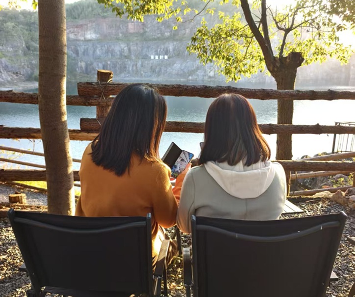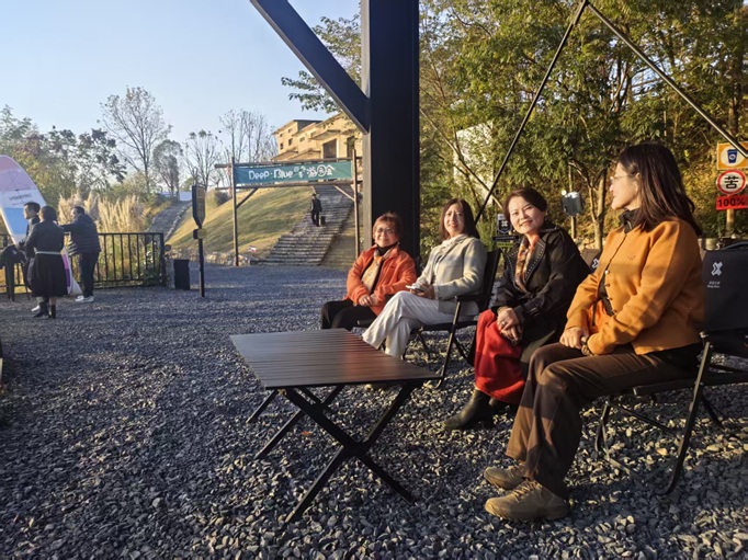 海外华文媒体团沿着矿湖漫步、经废墟台阶而上,进入一间间由青年改造的老建筑。夕阳洒在湖面上,照亮了新与旧融合的空间。有人说:“深蓝计划不像乡村项目,更像是一部青年参与乡村实验的纪录片。”有人说:“这不是改造,而是重新赋予乡村一个新的时代角色。”也有人说:“乡村振兴不是复制城市,而是找到乡村自己的节奏、美学和产业。”深蓝计划正是这样一个案例——用青年视角,让乡村变得时尚;用创意手段,让废墟变成资源;用“两山理念”,让绿色成为最大的生产力。