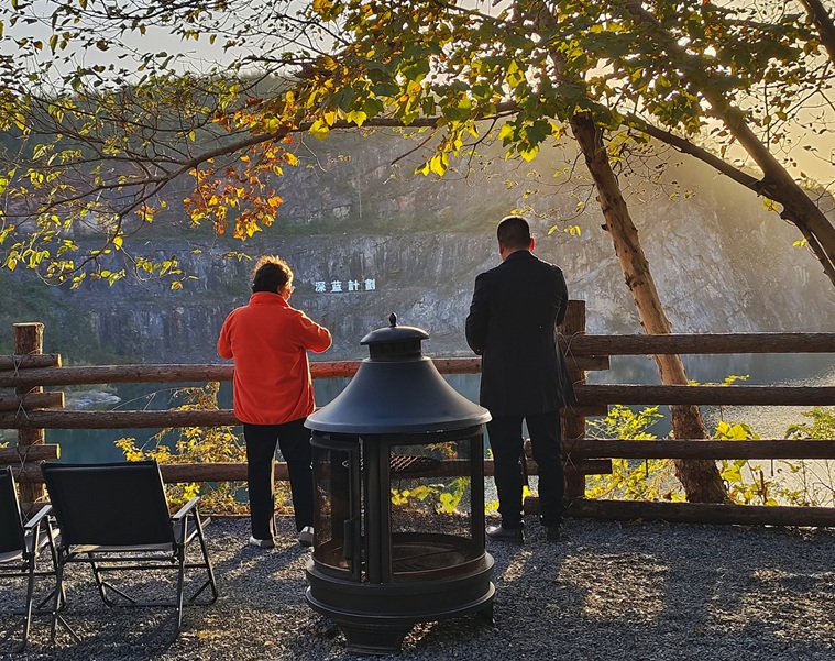 深蓝计划占地300多亩,原是露天矿坑。在“两山理念”引领下,团队投入900多万元: